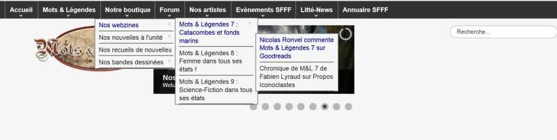 Du coup, j'ai fait un test pour inclure à la fois le lien de téléchargement dans le menu du haut du site et qu'on puisse voir en mettant le curseur sur une publication ses différentes chroniques. Je n'ai fait pour le moment le test que pour M&L7 et je vous joins un screen ci-dessous pour aider à visualiser :