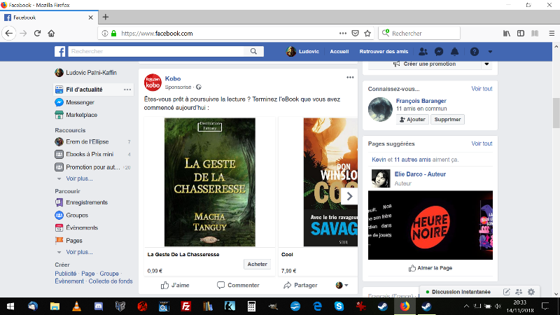 (Après une petite partie de moi se dit qu'ils ont dû chopé d'une façon ou d'une autre ma navigation, mais je ne suis passé sur Kobo que pour prendre le lien de Les Tisseurs de Mondes, du coup le lien avec la chasseresse me parait limité)