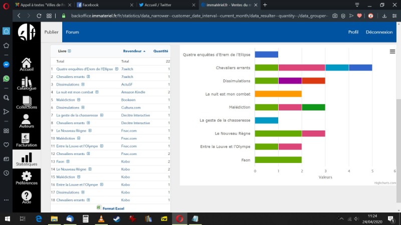 Puis pour le moral, les ventes actuelles d'Immatériel, avec sans doute dix jours d'absences des ventes d'Amazon, car il manque une vente de Flâneries, qui avait eu lieu au lancement, donc je peux quantifier le retard !