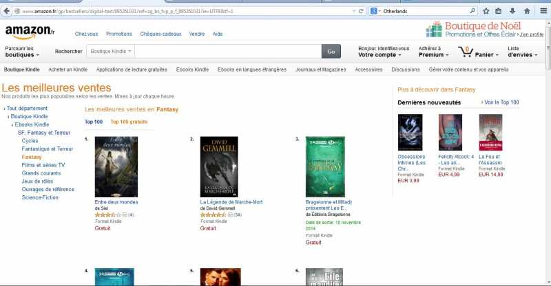 "Entre deux mondes" est également huitième dans le classement des ebooks gratuits d'Amazon .