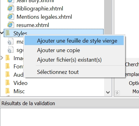 Du coup, il faut que crées la feuille en faisant clic droit sur le répertoire "style" :