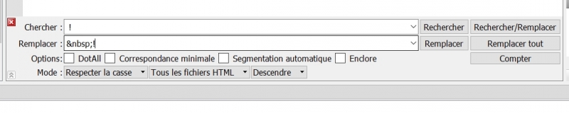 Ce que je fais c'est que je fais un "chercher/remplacer" et, par exemple, je cherche " !" et je remplace par
